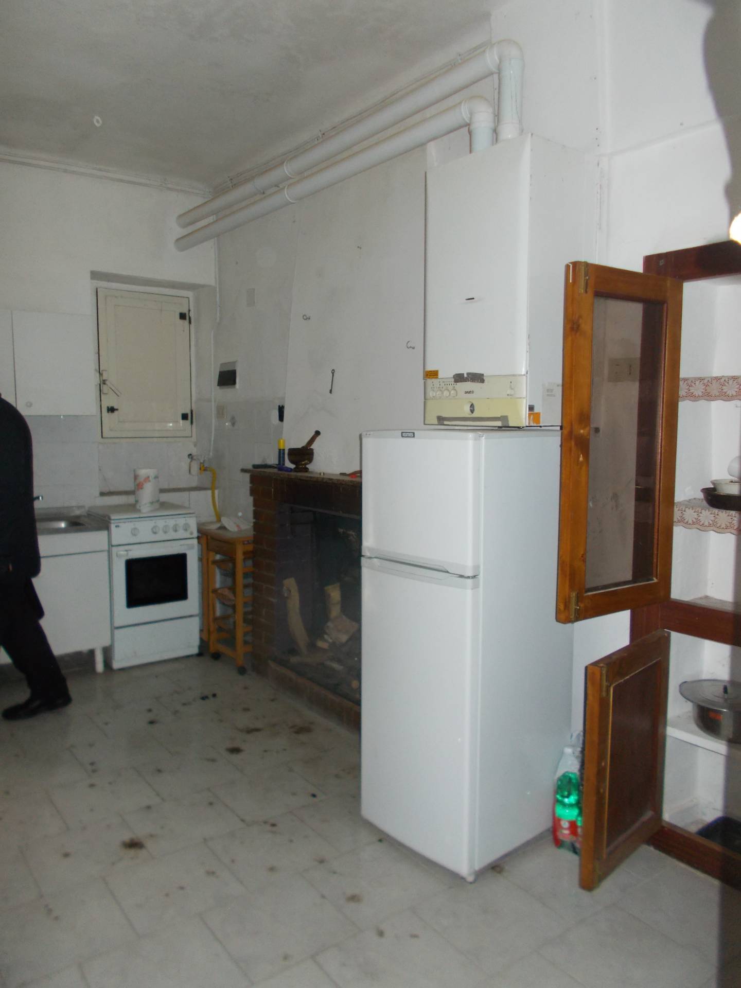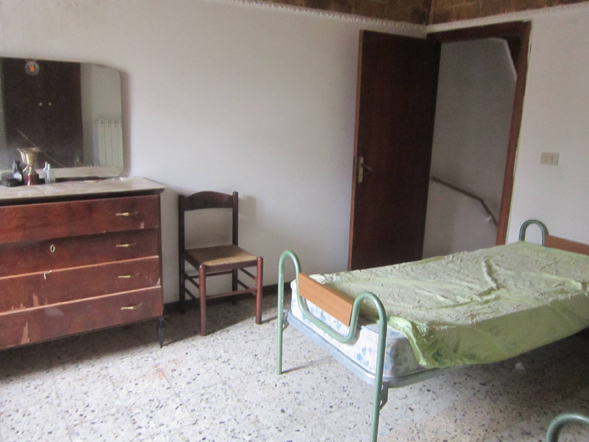 The property is currently in need of renovation, giving the buyer the opportunity to customize the spaces to their taste and create a home tailored to their needs. The house is wood-fired, thanks to the existing stove system, and the window frames and doors are made of wood and aluminum.